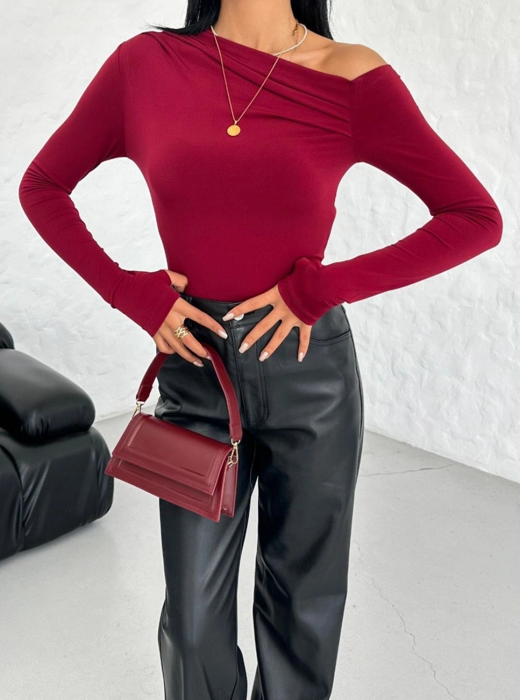 Bordo Kayık Yaka Bluz