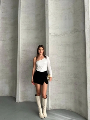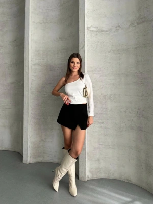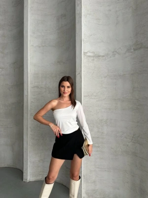 Beyaz Tek Omuz Uzun Kollu Bluz