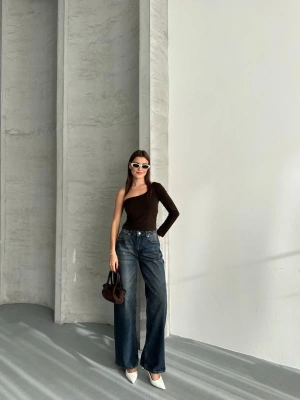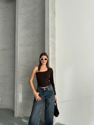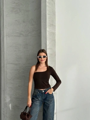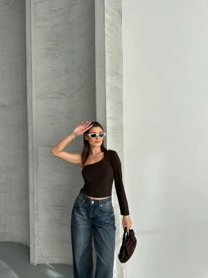 Kahverengi Tek Omuz Uzun Kollu Bluz