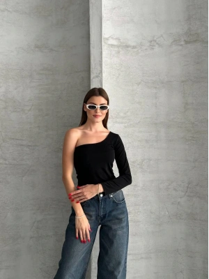 Siyah Tek Omuz Uzun Kollu Bluz
