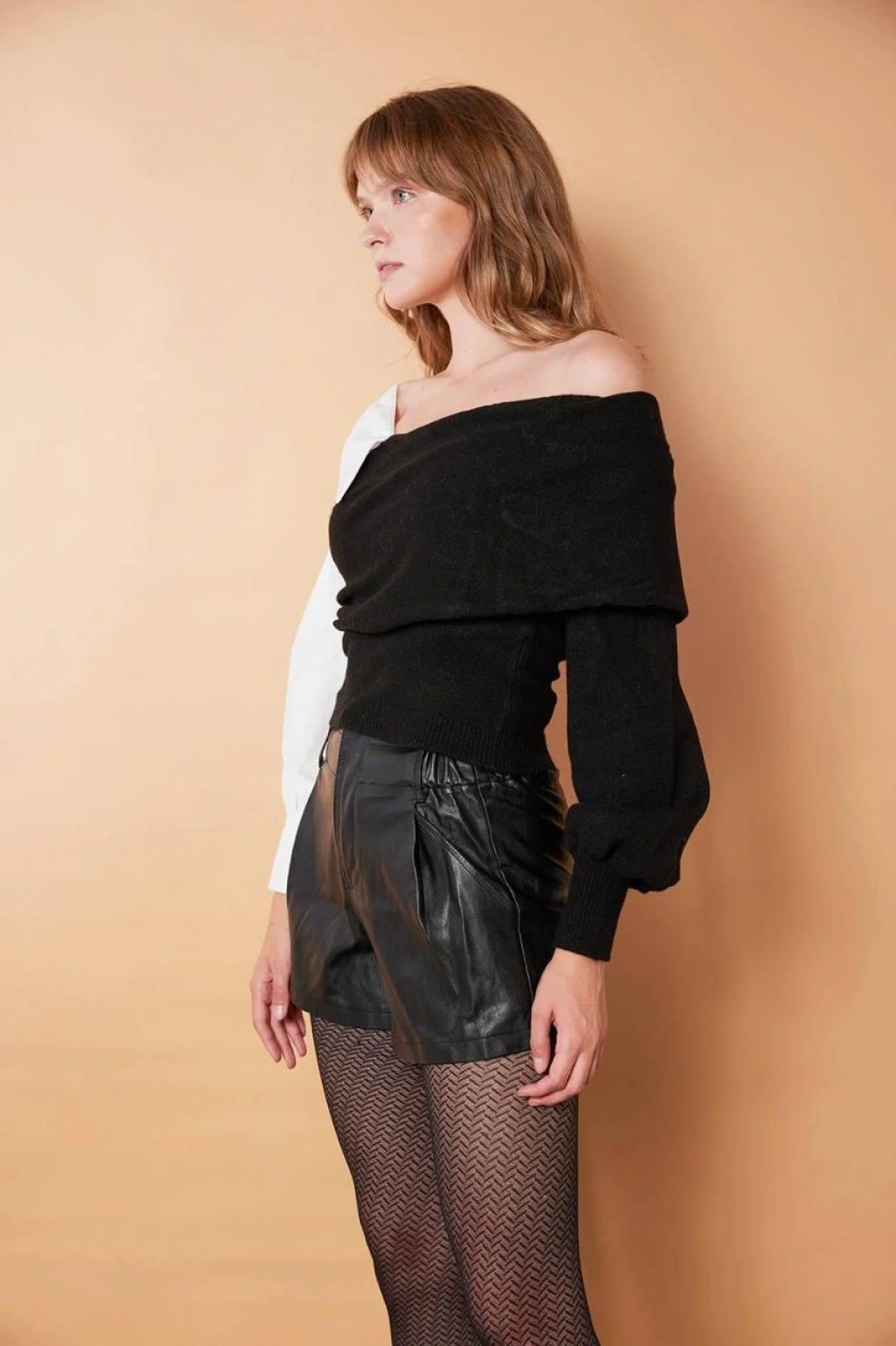 Siyah Gömlek Detay Kazak