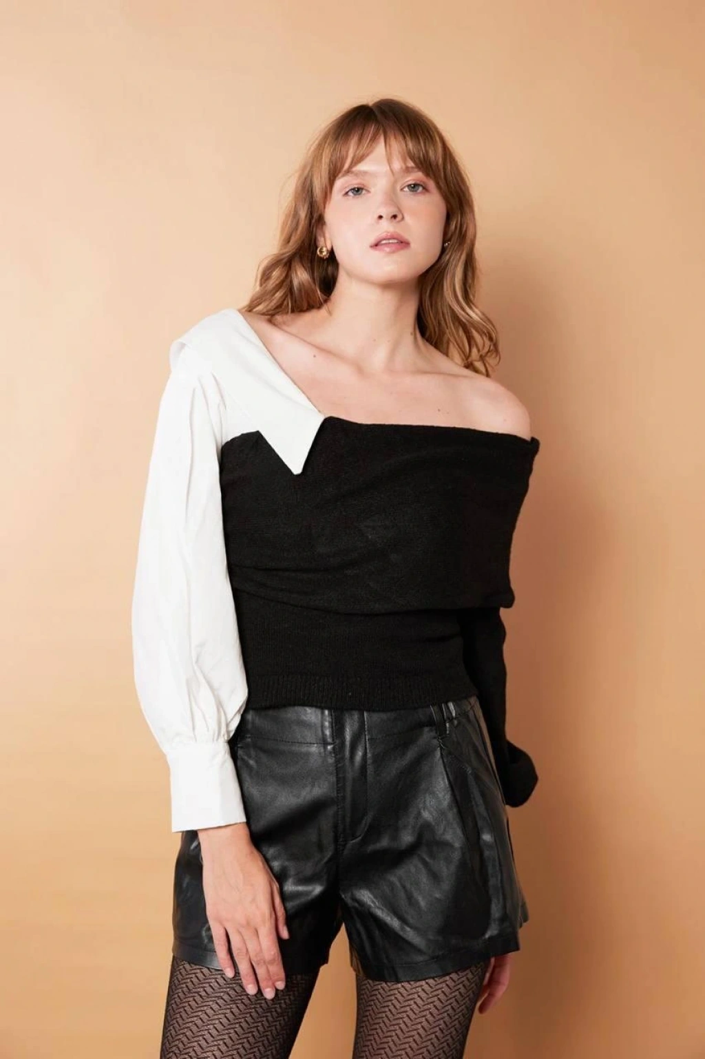 Bej Kısa Kollu Tek Omuz Bluz