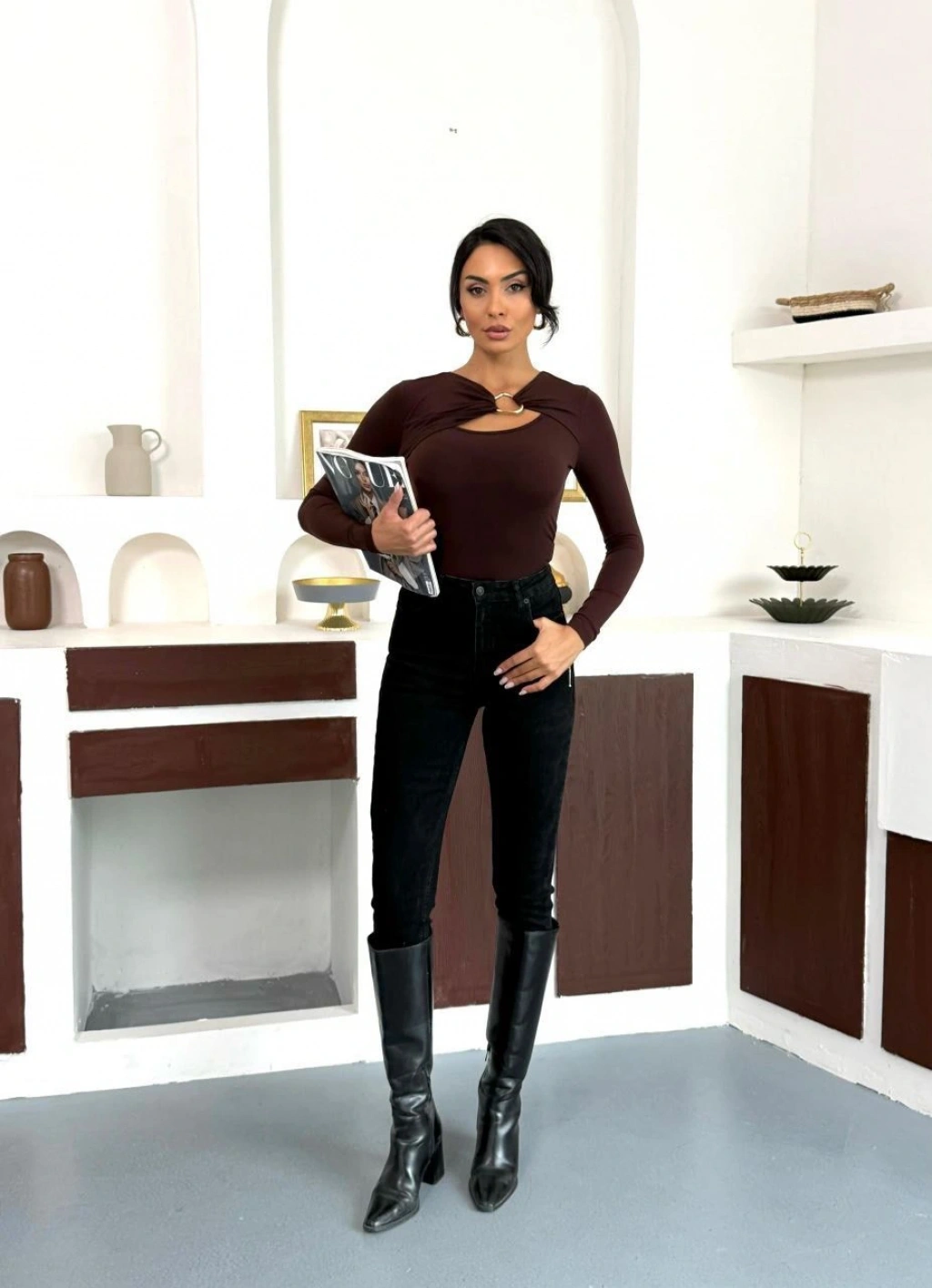 Kahverengi Aksesuar Detay Bluz