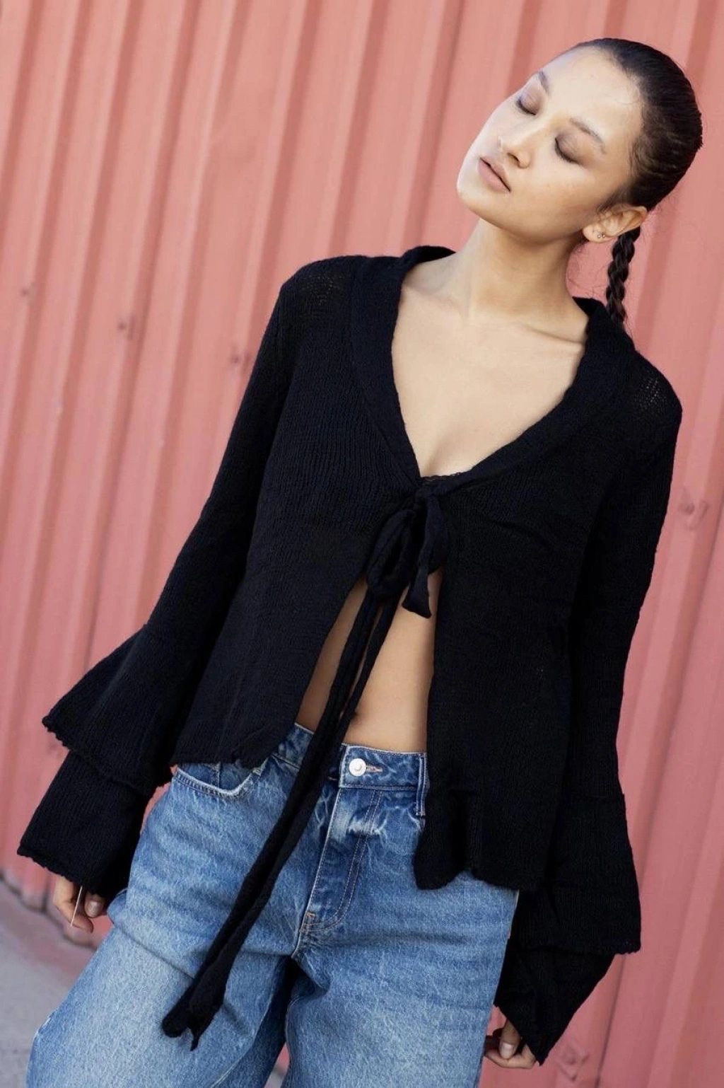 Siyah Ön Bağlamalı Kol Detay Hırka