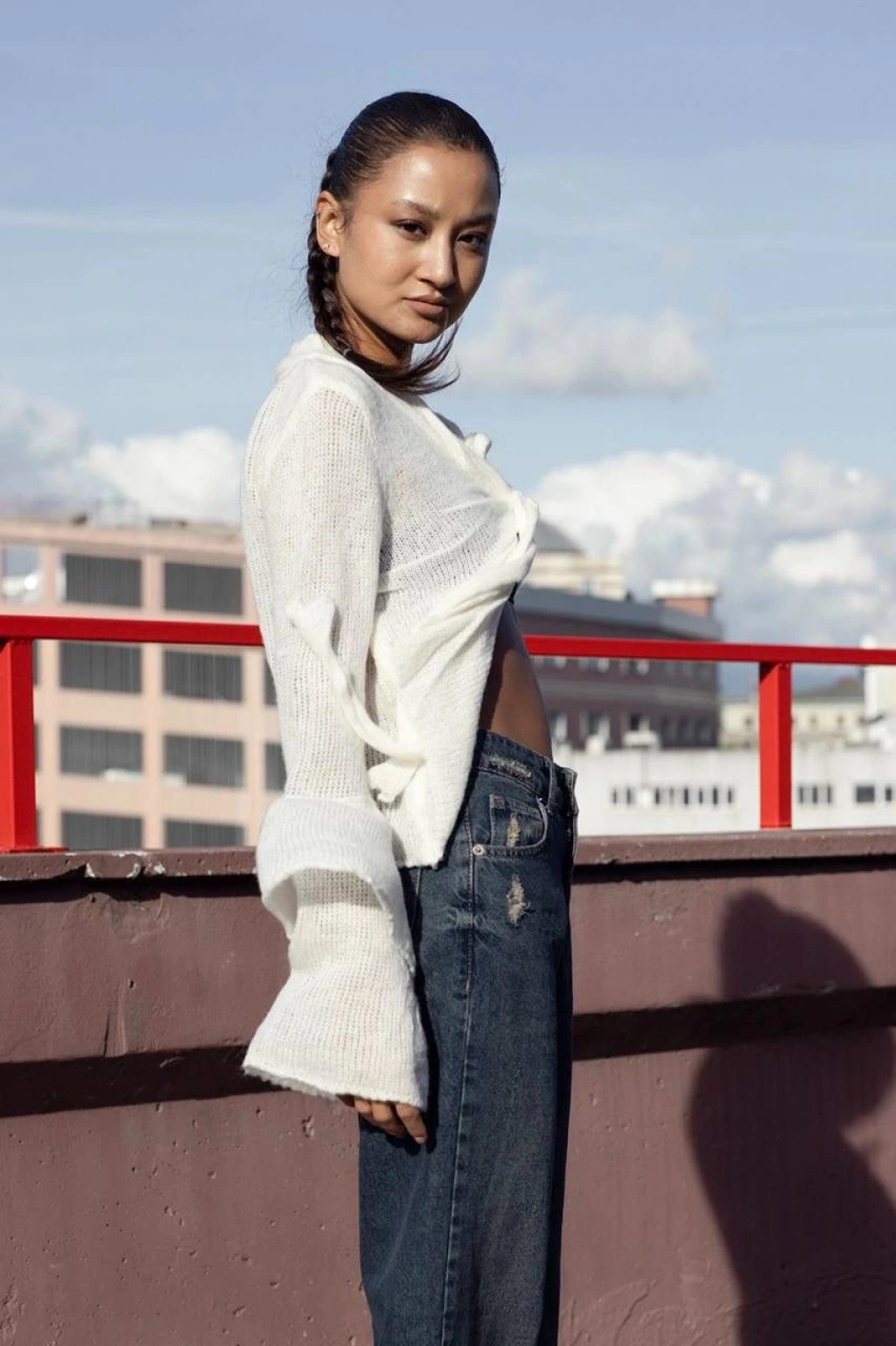 Ekru Ön Bağlamalı Kol Detay Hırka