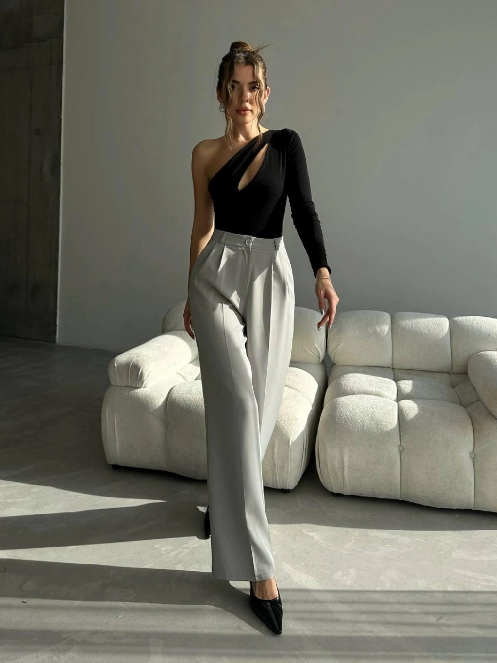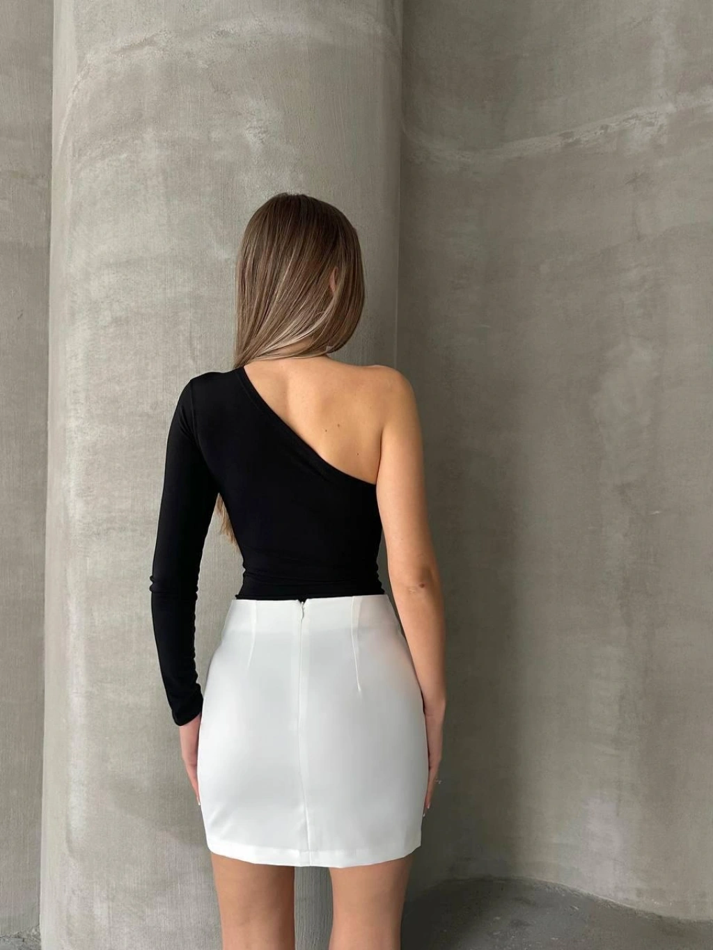 Siyah Kısa Kollu Tek Omuz Bluz