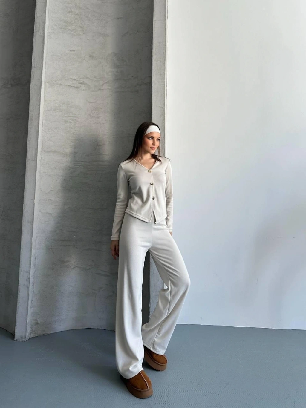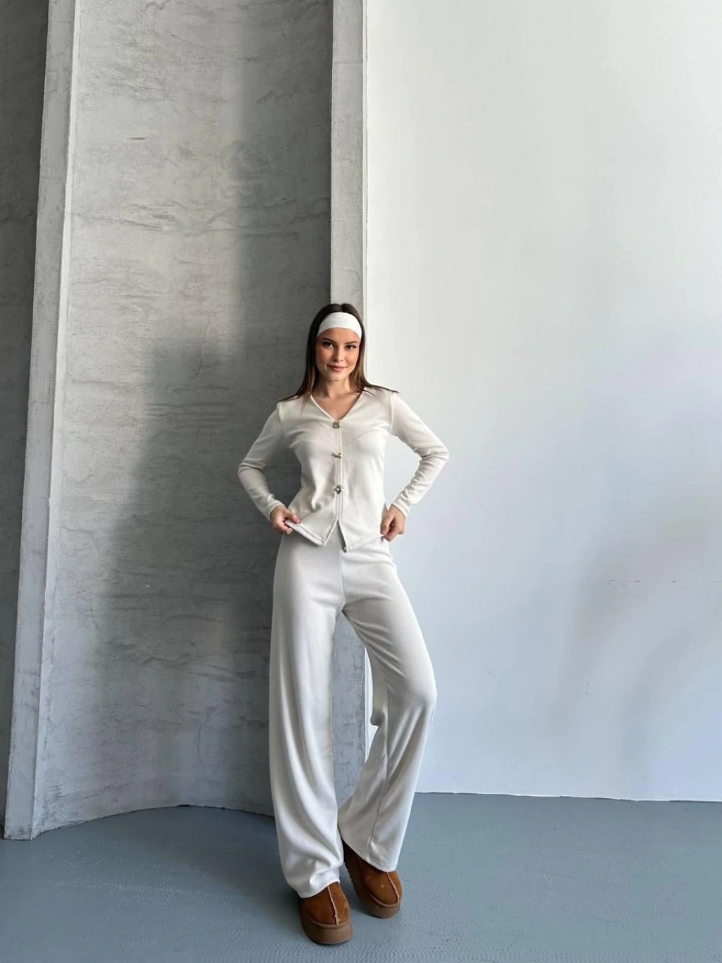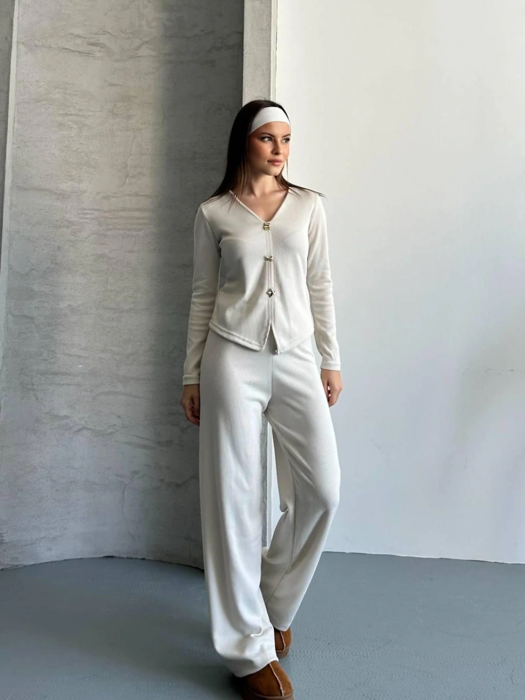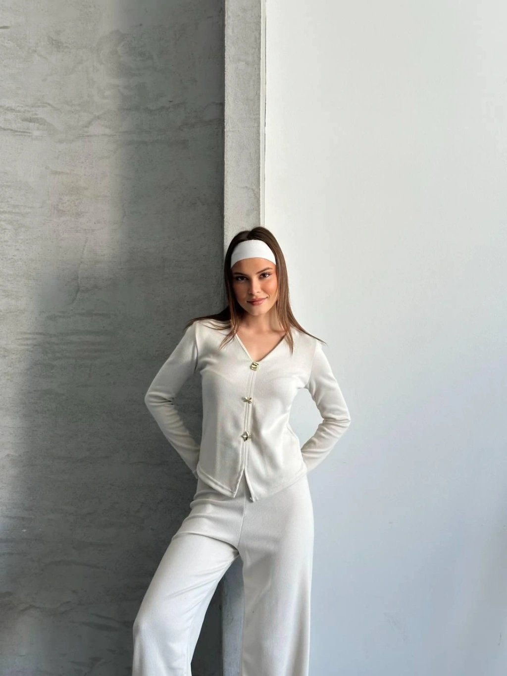 Beyaz Tek Omuz Uzun Kollu Bluz