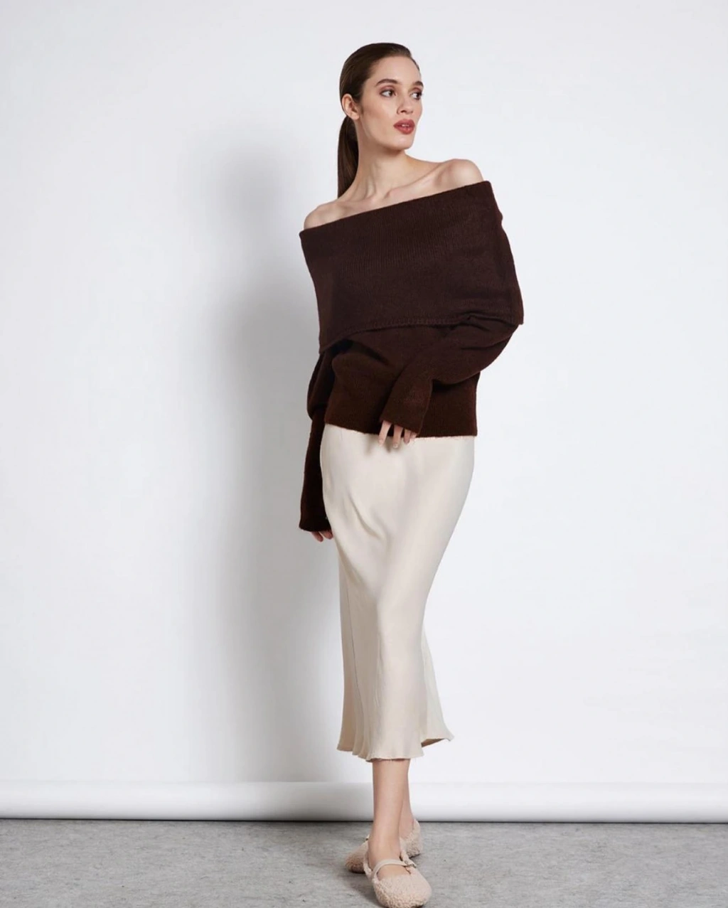 Kahverengi Madonna Yaka Şardonlu Kazak